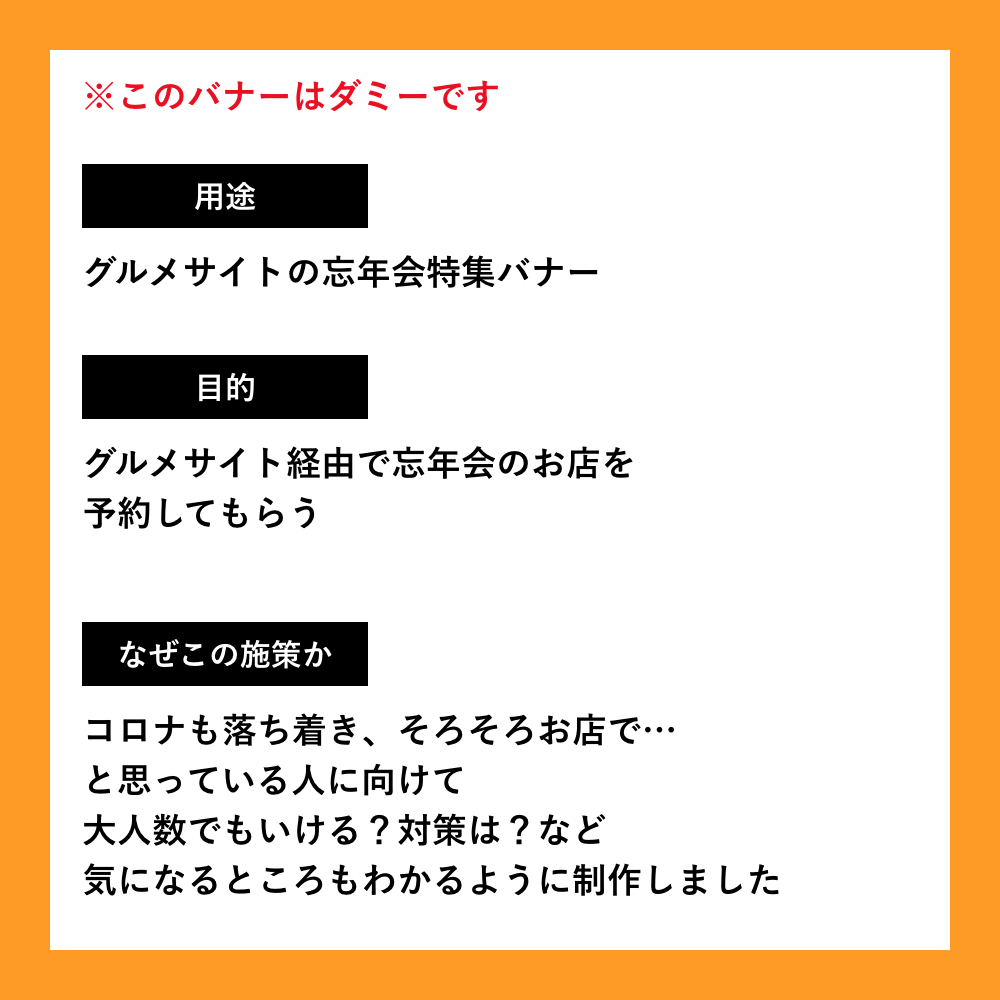 グルメサイトの忘年会特集バナーをつくってみました。この日もけっこう反響をいただいたので嬉しいです!