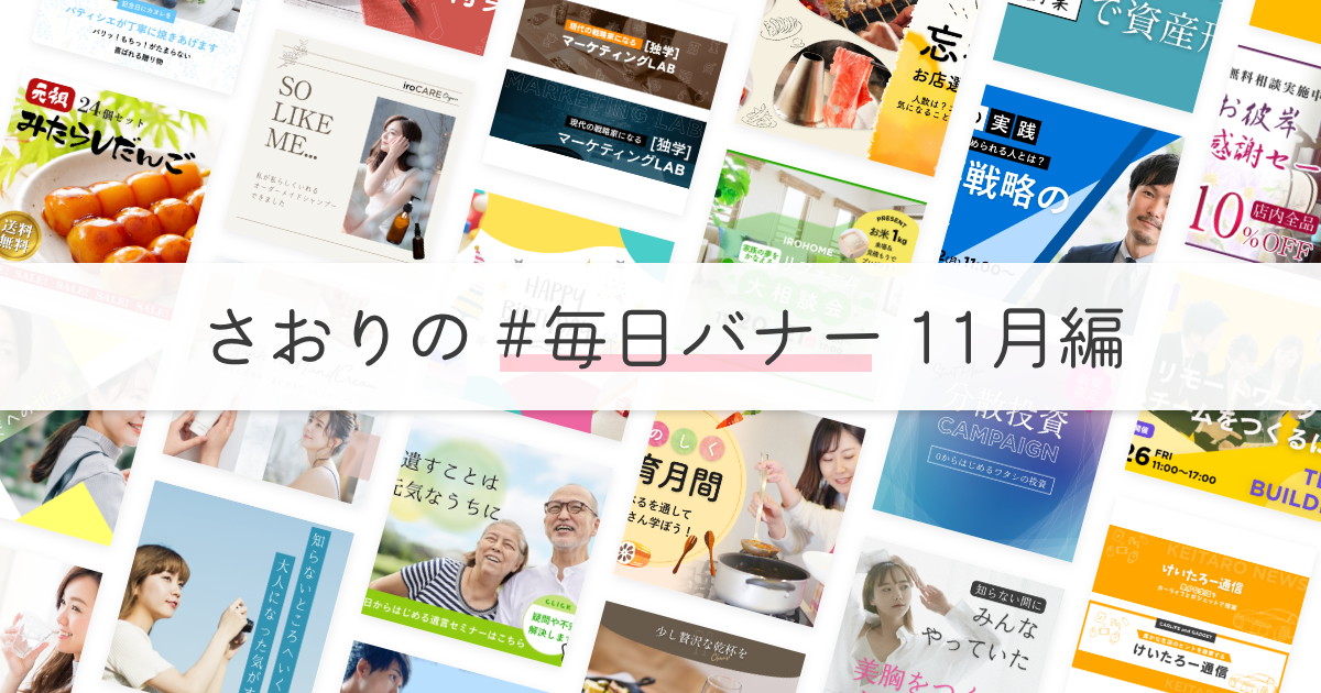 ブログの記事だけ紹介するのも何だかなぁと思い、毎日バナーをつくってみよう!と思い立ちました。今回は11月に制作したバナーを一気に紹介します。