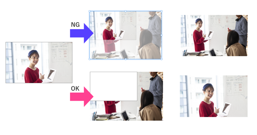 透かし入りの画像を変更する時に、シェイプでマスクせず元画像をずらしてマスクしているので、本番画像を入れるとズレる…えっ、透かし入りの画像そのまま使わせるつもりなの!?ちゃんとコーディングする人のこと考えて…